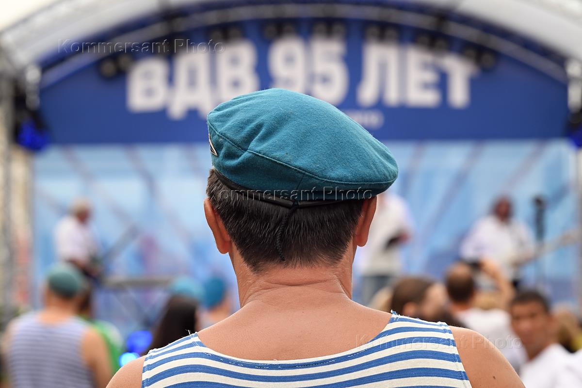 Праздничные мероприятия, посвященные 95-й годовщине со дня образования Воздушно-десантных войск (ВДВ) России в Парке культуры и отдыха (ПКиО) имени Горького. Бывший военнослужащий ВДВ во время празднования.