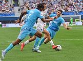 Мир Российская Премьер-Лига (РПЛ) 2025/2026. 3-й тур. Матч между командами "Зенит" (Санкт-Петербург) - ЦСКА (Москва) на стадионе "Газпром Арена". Игрок команды ЦСКА Мойзес (в центре) во время матча.