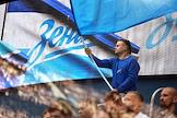 Мир Российская Премьер-Лига (РПЛ) 2025/2026. 3-й тур. Матч между командами "Зенит" (Санкт-Петербург) - ЦСКА (Москва) на стадионе "Газпром Арена". Болельщики команды "Зенит" на зрительской трибуне во время матча.