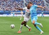Мир Российская Премьер-Лига (РПЛ) 2025/2026. 3-й тур. Матч между командами "Зенит" (Санкт-Петербург) - ЦСКА (Москва) на стадионе "Газпром Арена". Игрок команды ЦСКА Мойзес (слева) и игрок команды "Зенит" Александр Соболев (справа) во время матча.