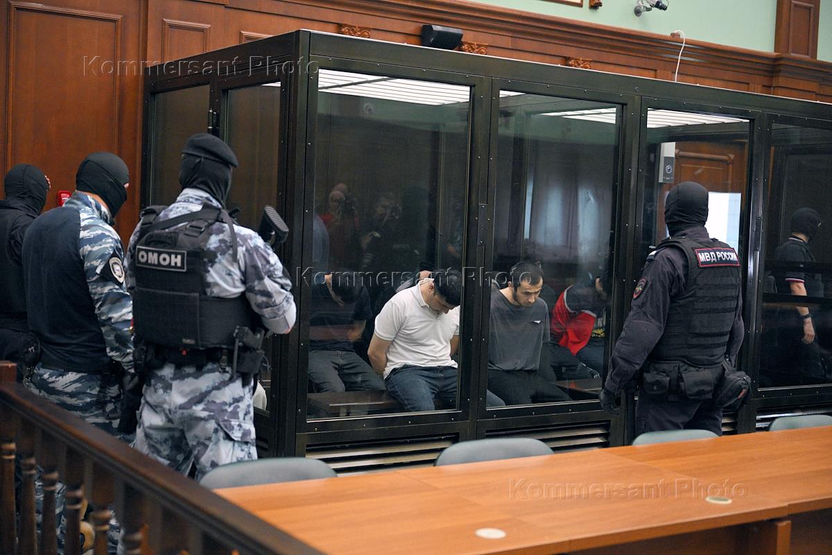 Выездное заседание Второго западного окружного военного суда по существу уголовного дела в отношении 19 исполнителей и соучастников террористического акта в концертном зале "Крокус сити холл" в подмосковном Красногорске, жертвами которого стали 149 человек, в здании Апелляционного корпуса Московского городского суда.