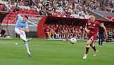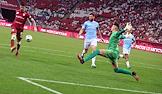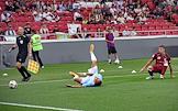 Мир Российская Премьер-Лига (РПЛ) 2025/2026. 3-й тур. Матч между командами "Рубин" (Казань) - "Сочи" (Сочи) на стадионе "Ак Барс Арена". Игрок команды "Рубин" Богдан Йочич (слева) и игрок команды "Сочи" Игнасио Сааведра (справа) во время матча.