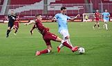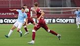 Мир Российская Премьер-Лига (РПЛ) 2025/2026. 3-й тур. Матч между командами "Рубин" (Казань) - "Сочи" (Сочи) на стадионе "Ак Барс Арена". Игрок команды "Рубин" Мирлинд Даку (слева) и игрок команды "Сочи" Вячеслав Литвинов (справа) во время матча.