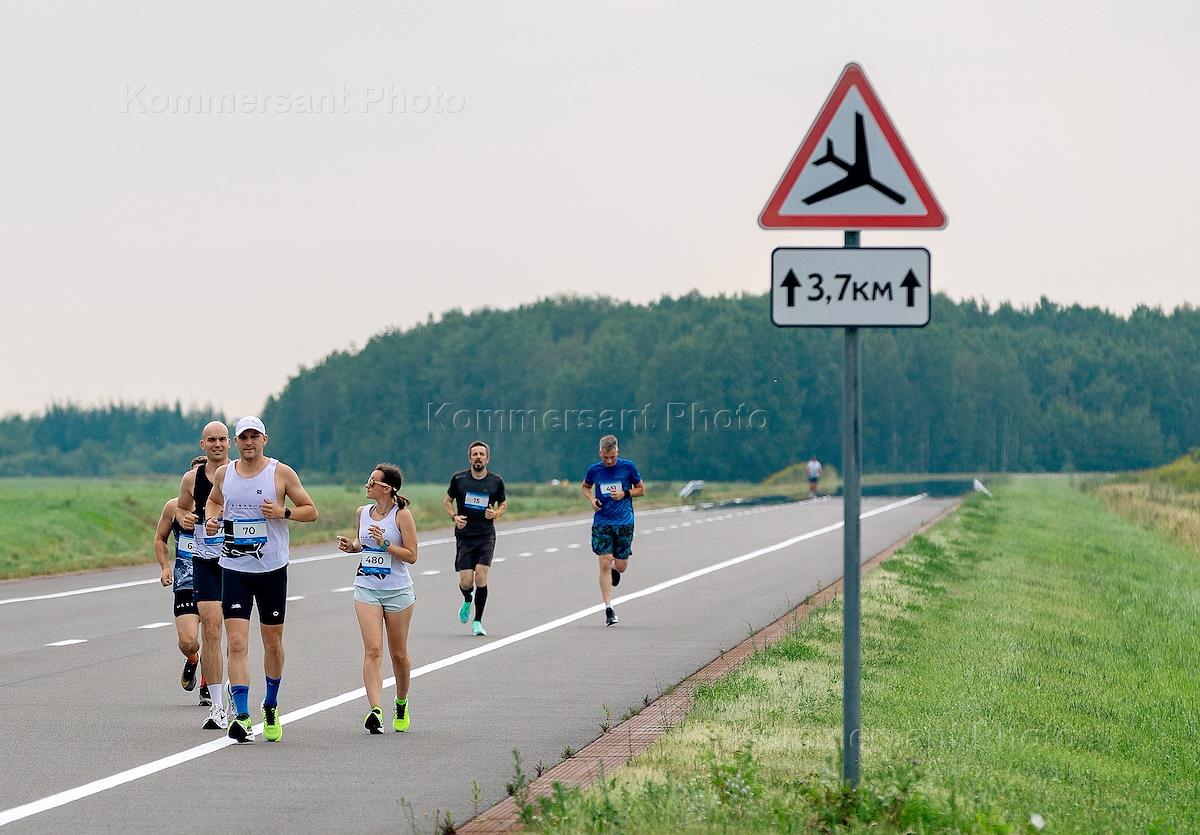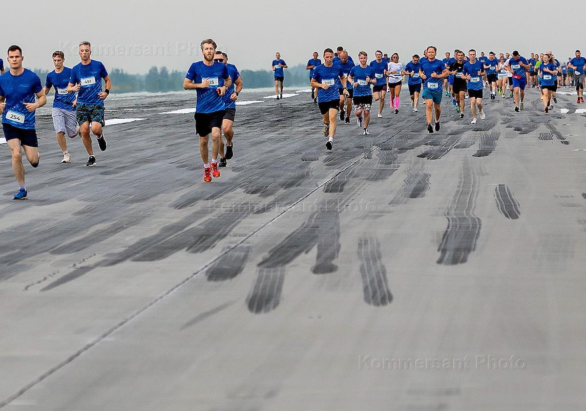 Международный аэропорт Пулково имени писателя Федора Достоевского. Жанровая фотография. Ежегодный "Забег по взлетно-посадочной полосе-2025" в аэропорту Пулково. Участники забега.