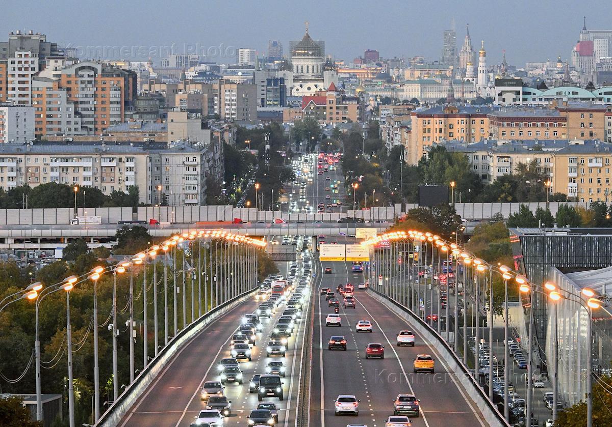 Жанровая фотография. Виды Москвы. Автомобильная магистраль в городе.