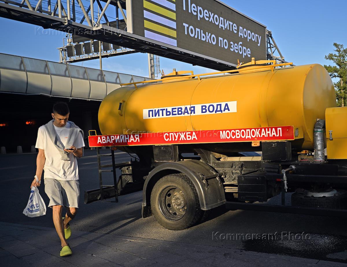 Жанровая фотография. Машина аварийной службы Мосводоканала с цистерной питьевой воды.