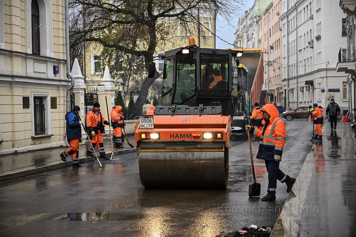Виды Москвы. Архангельский переулок. Жанровая фотография. Рабочие во время укладки асфальта.