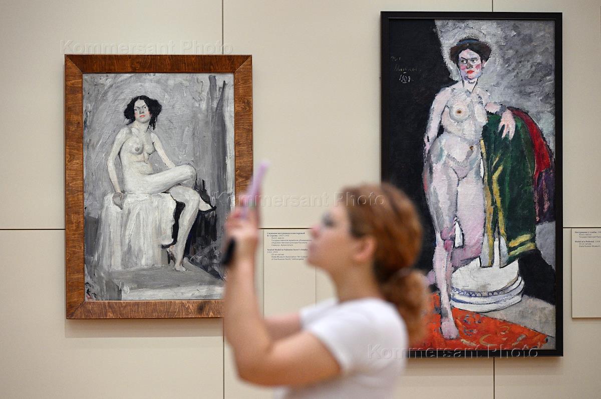Выставка "Илья Машков. Авангард. Китч. Классика" в Государственной Третьяковской галерее. Посетители на выставке.