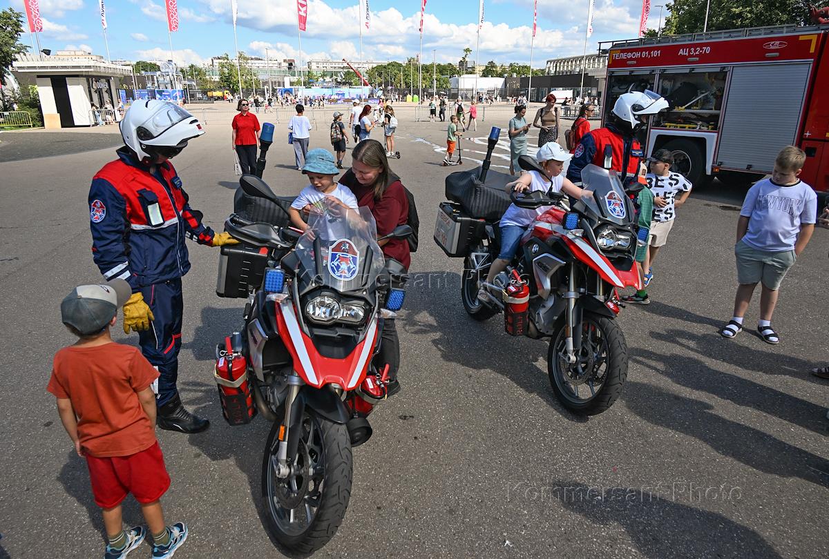 Форум-фестиваль "Территория будущего. Москва 2030". День Железнодорожных войск России в спортивном комплексе "Лужники". Показательные выступления спасателей.