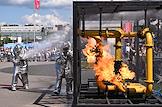 Форум-фестиваль "Территория будущего. Москва 2030". День Железнодорожных войск России в спортивном комплексе "Лужники". Показательные выступления спасателей. Тушение пожара на нефтепроводе.