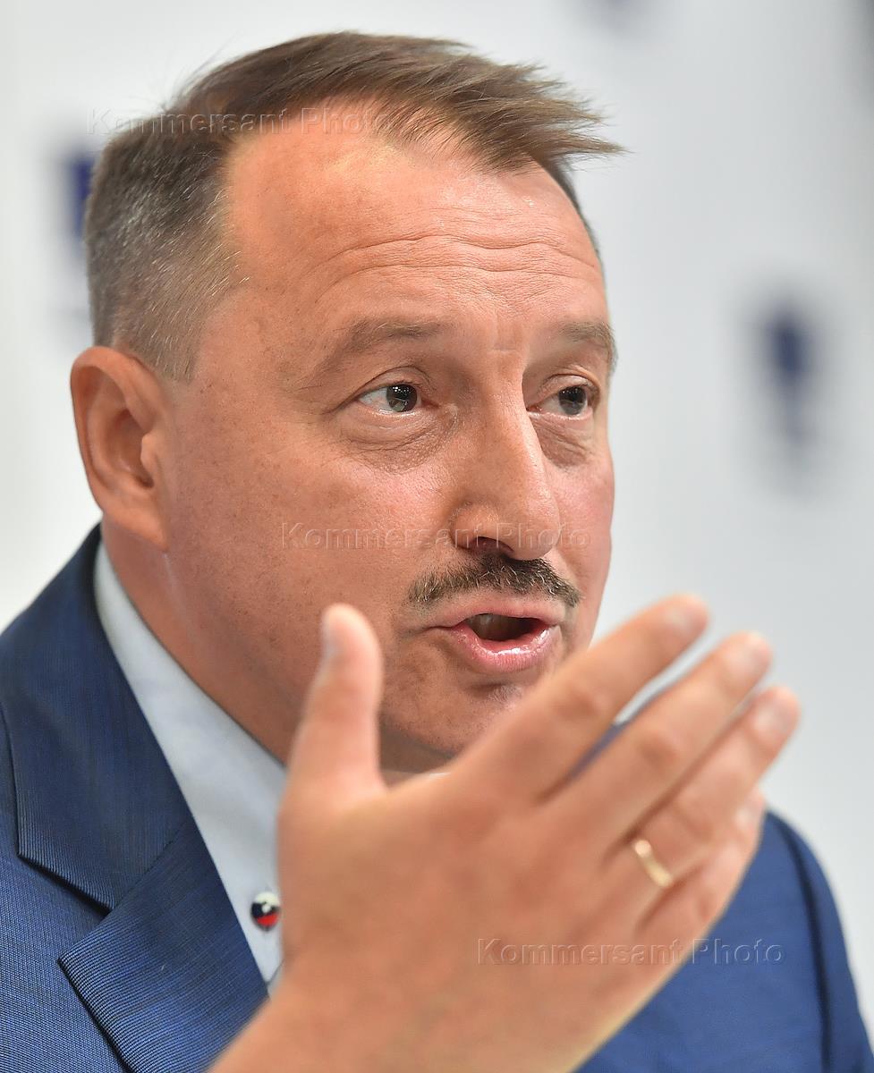 Пресс-конференция, посвященная выборам губернатора Ленинградской области в Единый день голосования 12-14 сентября 2025 года. Председатель Избирательной комиссии Ленинградской области Михаил Лебединский во время пресс-конференции.