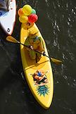 САП-фестиваль "Яуза Фест". Карнавальный сап-заплыв на реке Яуза. Участник во время заплыва.