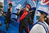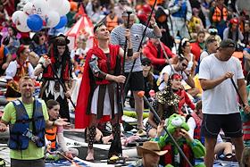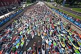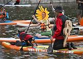 САП-фестиваль "Яуза Фест". Карнавальный сап-заплыв на реке Яуза. Участники перед началом заплыва.