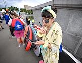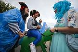 САП-фестиваль "Яуза Фест". Карнавальный сап-заплыв на реке Яуза. Участница перед началом заплыва.
