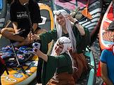 САП-фестиваль "Яуза Фест". Карнавальный сап-заплыв на реке Яуза. Участники после окончания заплыва.