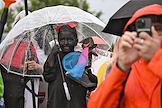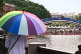САП-фестиваль "Яуза Фест". Карнавальный сап-заплыв на реке Яуза. Зрители фестиваля на берегу.