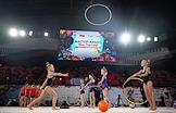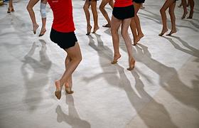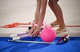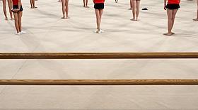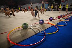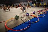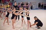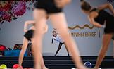 Мастер-класс тренера по художественной гимнастике Ирины Винер и звезд художественной гимнастики, приуроченный ко Дню физкультурника, во Дворце гимнастики Ирины Винер. Гимнастки во время мастер-класса.