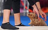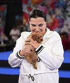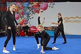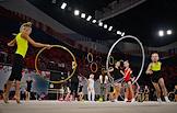 Мастер-класс тренера по художественной гимнастике Ирины Винер и звезд художественной гимнастики, приуроченный ко Дню физкультурника, во Дворце гимнастики Ирины Винер. Жанровая фотография.