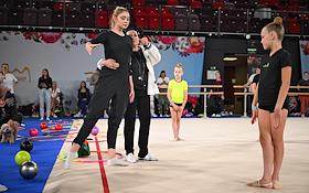 Мастер-класс тренера по художественной гимнастике Ирины Винер и звезд художественной гимнастики, приуроченный ко Дню физкультурника, во Дворце гимнастики Ирины Винер.