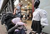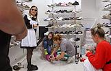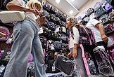 Большая школьная ярмарка в торговом комплексе "Садовод". Жанровая фотография. Покупатели на ярмарке.