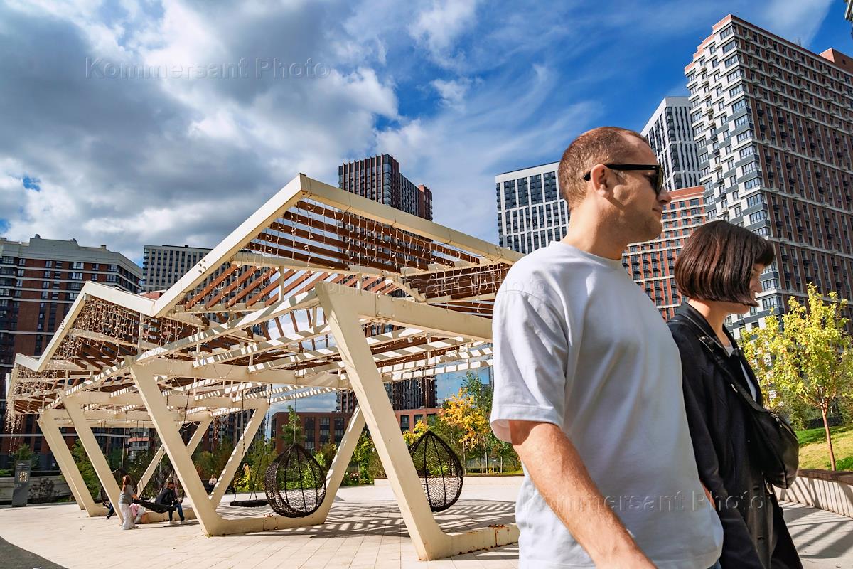 Виды Москвы. Жилой комплекс "Зиларт". Прохожие на набережной Марка Шагала.