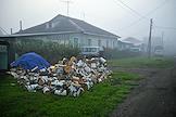 Жанровая фотография. Туман. Березовые дрова у дома.
