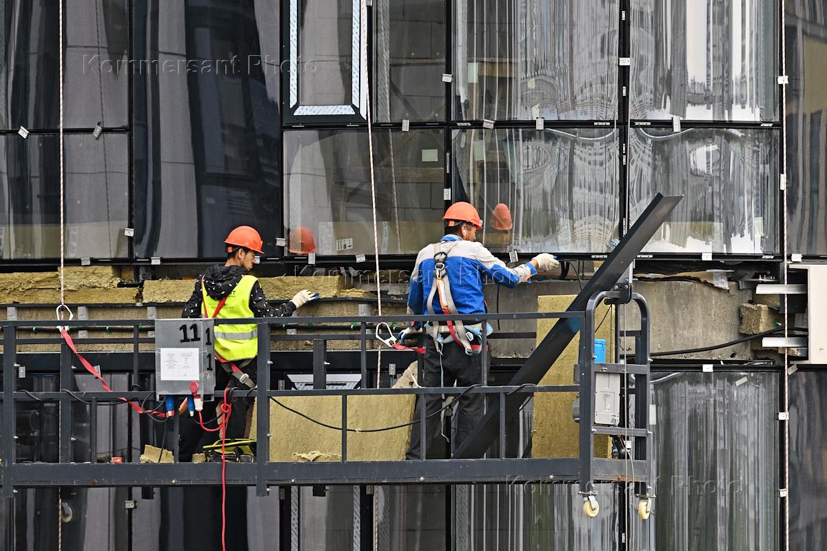 Жанровая фотография. Отделочные работы на фасаде жилого комплекса Voxhall ("Воксхолл") на Летниковской улице.