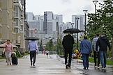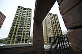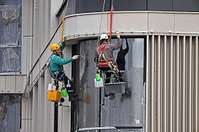Жанровая фотография. Мытье окон на фасаде жилого комплекса Voxhall ("Воксхолл") на Летниковской улице.