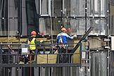 Жанровая фотография. Отделочные работы на фасаде жилого комплекса Voxhall ("Воксхолл") на Летниковской улице.