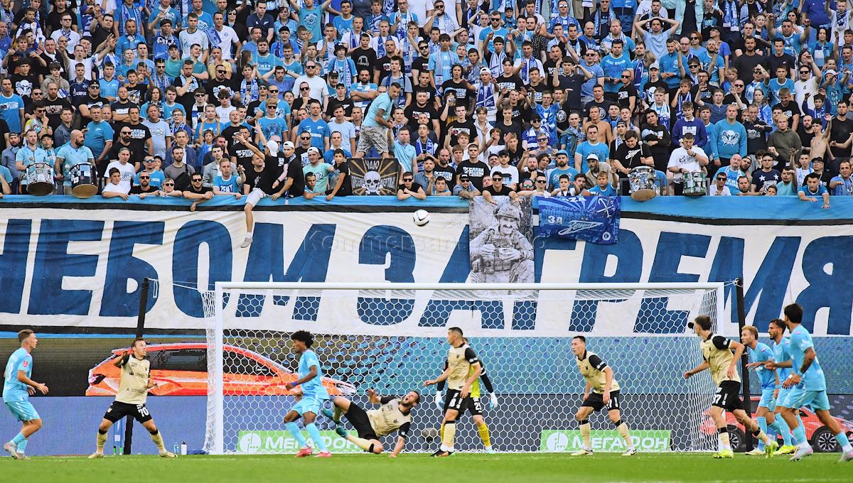 Фонбет - Кубок России по футболу 2024/25. 2-й Тур. Матч между командами "Зенит" (Санкт-Петербург) - "Рубин" (Казань) на стадионе "Газпром Арена". Болельщики команды "Зенит" на трибуне стадиона во время матча.