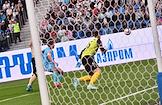 Фонбет - Кубок России по футболу 2024/25. 2-й Тур. Матч между командами "Зенит" (Санкт-Петербург) - "Рубин" (Казань) на стадионе "Газпром Арена". Вратарь команды "Рубин" Артур Нигматуллин (слева) и игрок команды "Зенит" Юрий Горшков (справа) во время матча.