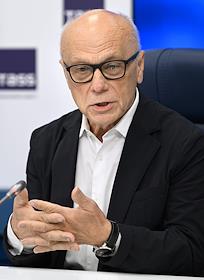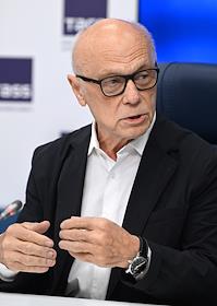 Пресс-конференция, посвященная подведению итогов приемной кампании в творческие учебные заведения, в пресс-центе ТАСС. Ректор ГИТИСа Григорий Заславский во время пресс-конференции.