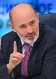 Пресс-конференция, посвященная подведению итогов приемной кампании в творческие учебные заведения, в пресс-центе ТАСС. Проректор по учебной работе и стратегическому развитию образовательной деятельности Российского государственного художественно-промышленного университета имени С.Г. Строганова Виктор Слепухин во время пресс-конференции.