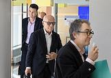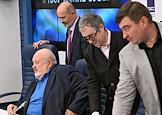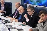 Пресс-конференция, посвященная подведению итогов приемной кампании в творческие учебные заведения, в пресс-центе ТАСС. Слева направо: ответственный секретарь приемной комиссии Российской академии музыки имени Гнесиных Сергей Малкин, ректор МГАХИ им. В. И. Сурикова Анатолий Любавин и ректор ГИТИСа Георгий Заславский перед началом пресс-конференции.