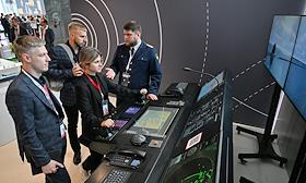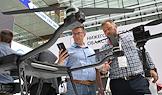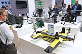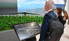 Международный форум "Беспилотные системы: технологии будущего" в инновационном центре "Сколково". Выставка беспилотных летательных аппаратов (БПЛА). Посетители на выставке. Стенд компании "АВАКС-ГеоСервис".