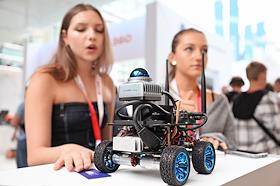 Международный форум "Беспилотные системы: технологии будущего" в инновационном центре "Сколково". Выставка беспилотных летательных аппаратов (БПЛА). Стенд компании Wheelies.