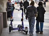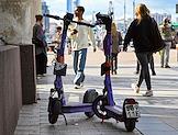 Жанровая фотография. Оставленные на тротуаре электросамокаты.