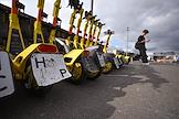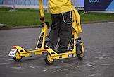 Жанровая фотография. Техник сервиса кикшеринга "Яндекс Go" во время расстановки электросамокатов на парковку.