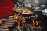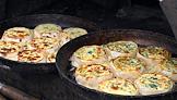 Гастрономический фестиваль "Вкусы России" на территории ВДНХ. Жанровая фотография. Приготовление блюд на фестивале. Удмуртские перепечи на сковродках.