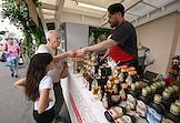 Гастрономический фестиваль "Вкусы России" на территории ВДНХ. Жанровая фотография. Торговля медом и изделиями на основе меда.