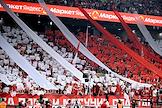 Мир Российская Премьер-Лига (РПЛ) 2025/2026. 5-й тур. Матч между командами "Спартак" (Москва) - "Зенит" (Санкт-Петербург) на стадионе "Лукойл Арена". Болельщики команды "Спартак" на трибуне во время матча.