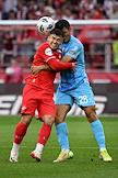 Мир Российская Премьер-Лига (РПЛ) 2025/2026. 5-й тур. Матч между командами "Спартак" (Москва) - "Зенит" (Санкт-Петербург) на стадионе "Лукойл Арена". Игрок команды "Зенит" Нуралы Алип (справа) и игрок команды "Спартак" Манфред Угальде (слева) во время матча.