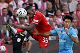Мир Российская Премьер-Лига (РПЛ) 2025/2026. 5-й тур. Матч между командами "Спартак" (Москва) - "Зенит" (Санкт-Петербург) на стадионе "Лукойл Арена". Игрок команды "Спартак" Кристофер Мартинс (слева) во время матча.