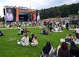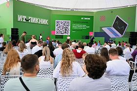 Семейный фестиваль для опытных ИТ-специалистов "ИТ-Пикник 2025" в музее-заповеднике "Коломенское". Участники фестиваля в лекционной зоне. Жанровая фотография.