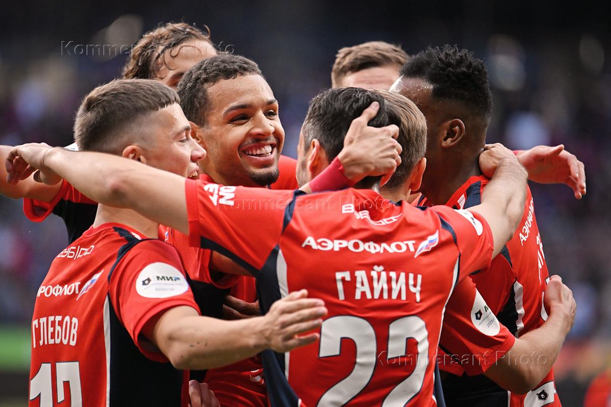 Мир Российская Премьер-Лига (РПЛ) 2025/2026. 5-й тур. Матч между командами "Динамо" (Москва) - ЦСКА (Москва) на стадионе "ВТБ Арена". Игроки команды ЦСКА во время матча.