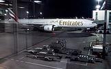 Жанровая фотография. Самолет авиакомпании Emirates на летном поле Международного аэропорта Пулково. Жанровая фотография.