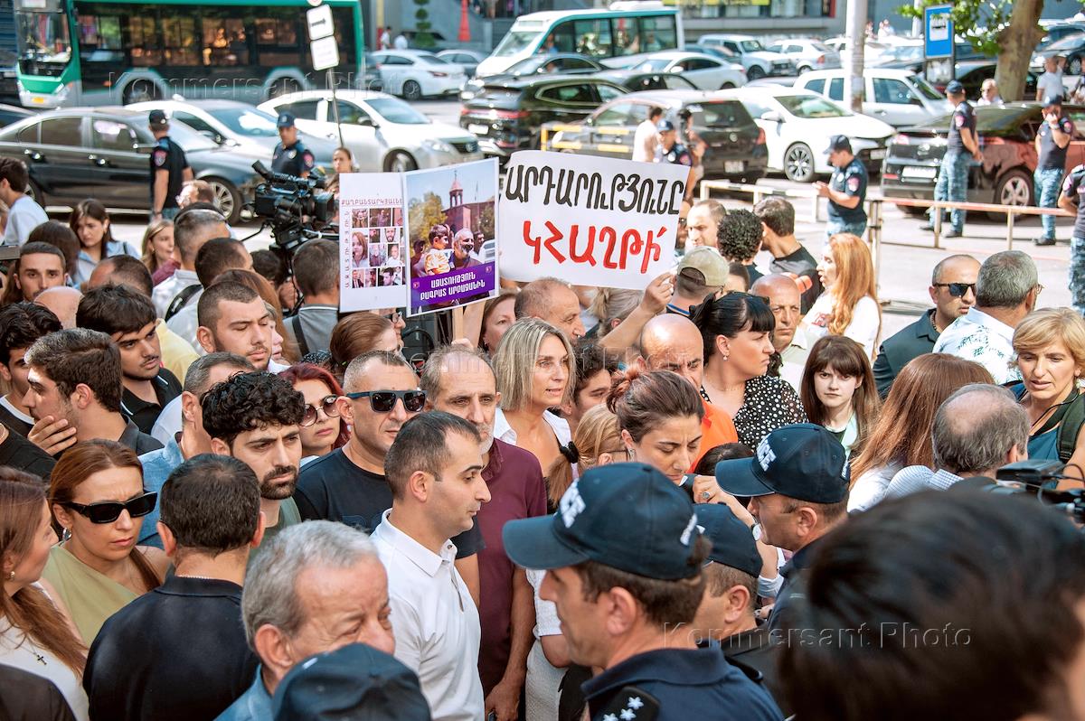 Судебное заседание по делу архиепископа Баграта Галстаняна в Уголовном суде первой инстанции общей юрисдикции города Еревана. Ситуация у здания суда.