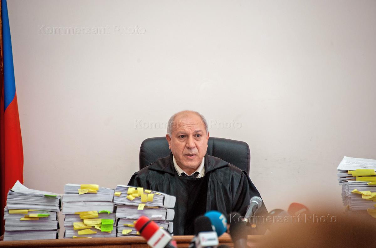 Судебное заседание по делу архиепископа Баграта Галстаняна, обвиняемого в попытке захвата власти, в Уголовном суде первой инстанции общей юрисдикции города Еревана. Судья Уголовного суда общей юрисдикции города Ереван Карен Фархоян во время заседания суда.