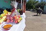 Празднование Преображения Господня (Яблочный Спас) в государственном бюджетном учреждении социального обслуживания "Комплексный центр социального обслуживания населения Володарского района". Яблоки и мед на столе перед началом чина освящения.