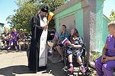 Празднование Преображения Господня (Яблочный Спас) в государственном бюджетном учреждении социального обслуживания "Комплексный центр социального обслуживания населения Володарского района". Священнослужитель во время чина освящения.